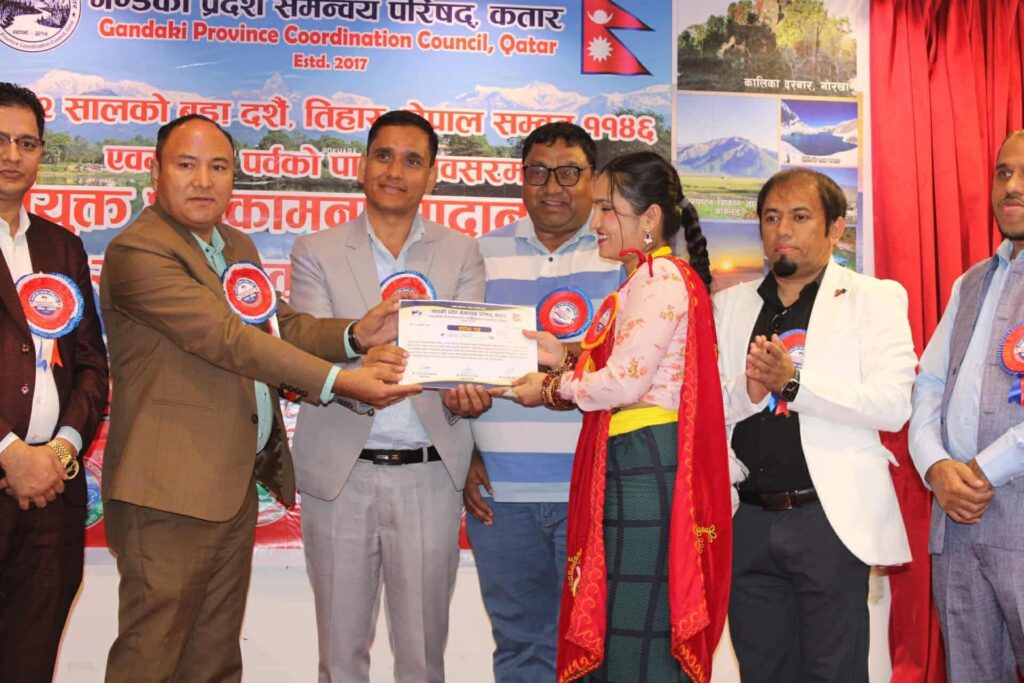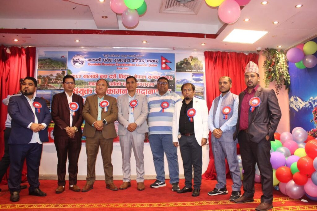 शुक्रबार सनैयामा अबस्थित फुलबारी रेष्टुरेन्टको सभाहलमा गण्डकी प्रदेश समन्वय परिषद कतारका अध्यक्ष नन्दलाल वि.क (अजय) को अध्यक्षता तथा प्रदेशकै संरक्षक आश बहादुर गुरुङको प्रमुख आतिथ्यता बडादशैँ, शुभ-दिपावली, नेपाल संवत र छठ पर्वको अवसरमा “बृहत् साँस्कृतिक कार्यक्रम-२०२५ भव्य रुपमा सम्पन्न भएको हो ।